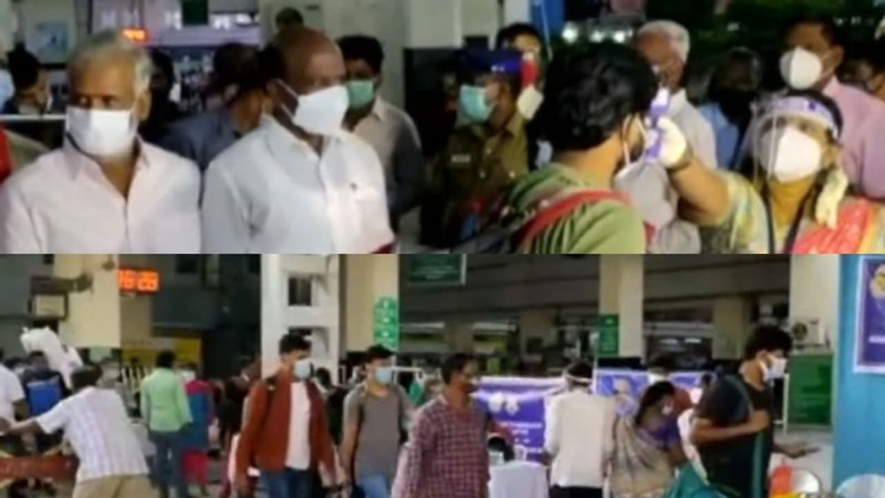 രാവിലെ 5.50-ഓടെയാണ് ചെന്നൈ സെൻട്രൽ സ്റ്റേഷനിൽ ആരോഗ്യമന്ത്രിയും ഒപ്പം ദേവസ്വം മന്ത്രിയും നേരിട്ടെത്തി പരിശോധന ആരംഭിച്ചത്.