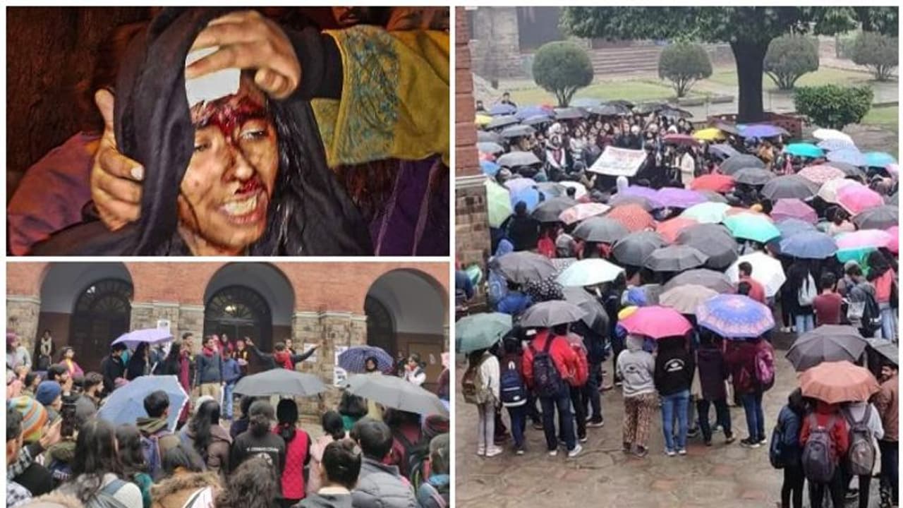 ക്ലാസുകള് ബഹിഷ്ക്കരിച്ച വിദ്യാര്ത്ഥികള് കോളേജിന് മുന്നില് ഭരണഘടന വായിച്ച് പ്രതിഷേധിച്ചു.