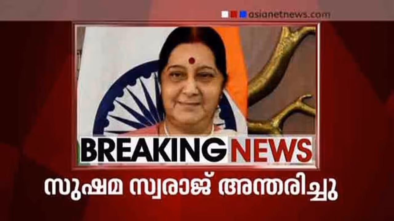 മുൻ വിദേശകാര്യ മന്ത്രി സുഷമ സ്വരാജ് അന്തരിച്ചു.