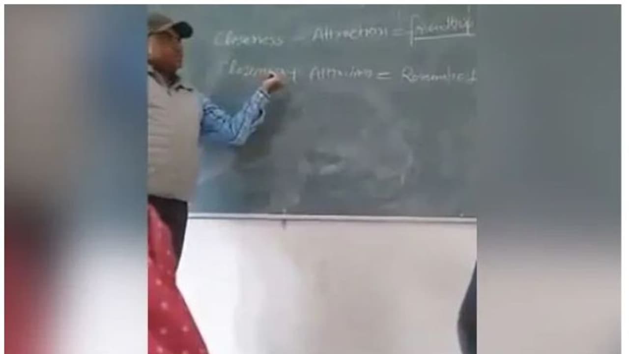 നാല് ഫോർമുലകളാണ് അധ്യാപകന് ബോർഡില് എഴുതിയത്. അടുപ്പം- ആകർഷണം = സൗഹൃദം, അടുപ്പം + ആകര്ഷണം = പ്രണയബന്ധം, ആകര്ഷണം- അടുപ്പം = ക്രഷ് എന്നുമാണ് അധ്യാപകന്റെ 'റിലേഷന്ഷിപ്പ് ഫോര്മുലകള്'. ഈ ഫോര്മുലകള് അധ്യാപകന് വിവരിക്കുന്നത് ഹിന്ദിയിലാണ് .