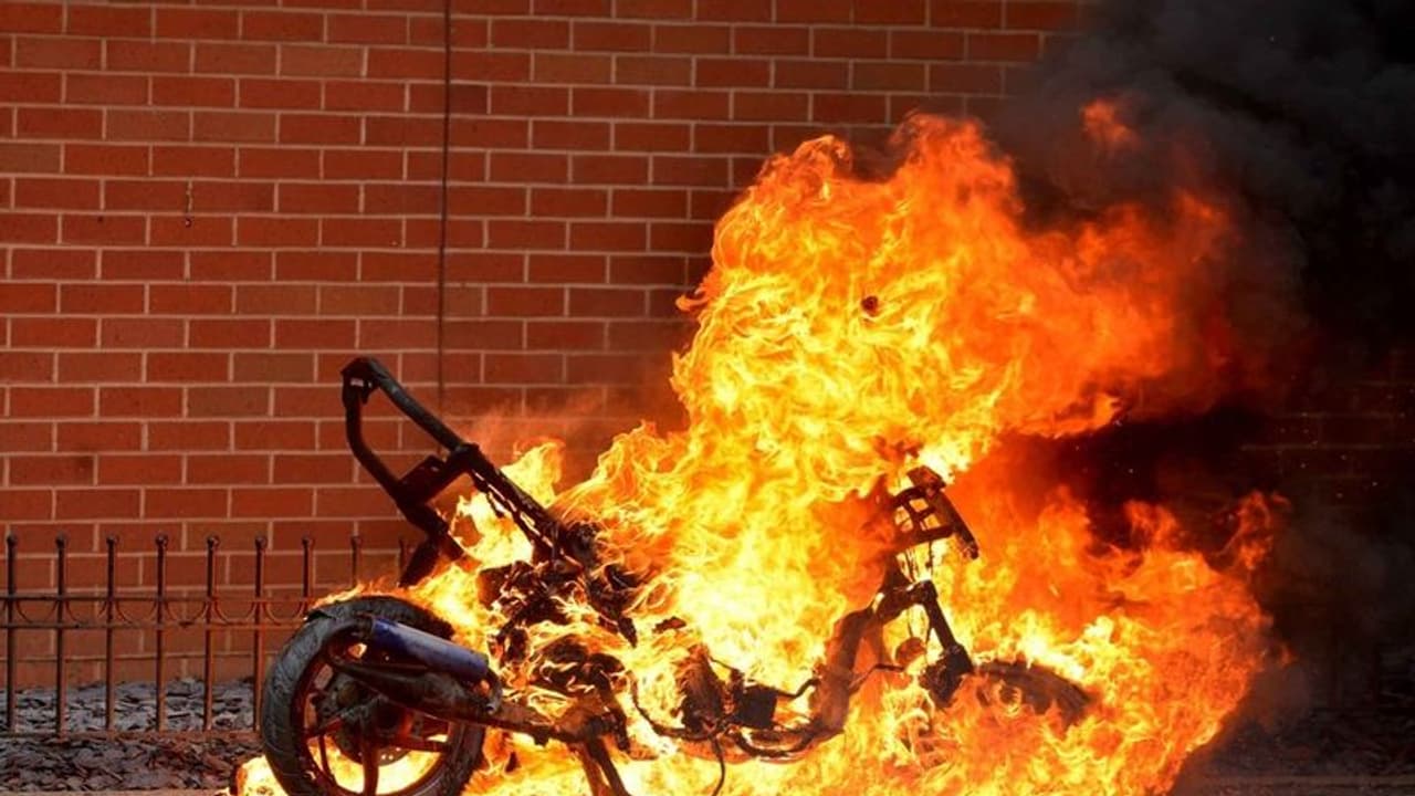 ബൈക്കിന് തീയിടുന്ന ദൃശ്യങ്ങള് ആരോ പകര്ത്തി സോഷ്യല് മീഡിയയില് പോസ്റ്റ് ചെയ്തതോടെ സംഭവം വൈറലാവുകയും ചെയ്തു.