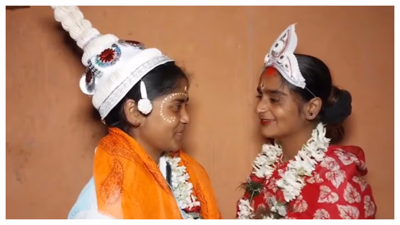പശ്ചിമ ബംഗാളിലെ സുന്ദർബൻസിൽ റിയ, രാഖി എന്നീ യുവതികൾ ക്ഷേത്രത്തിൽ വെച്ച് വിവാഹിതരായി. രണ്ട് വർഷത്തെ പ്രണയത്തിനൊടുവിലാണ് കുടുംബത്തിന്റെ എതിർപ്പുകളെ മറികടന്ന് ഇരുവരും ഒന്നിച്ചത്.