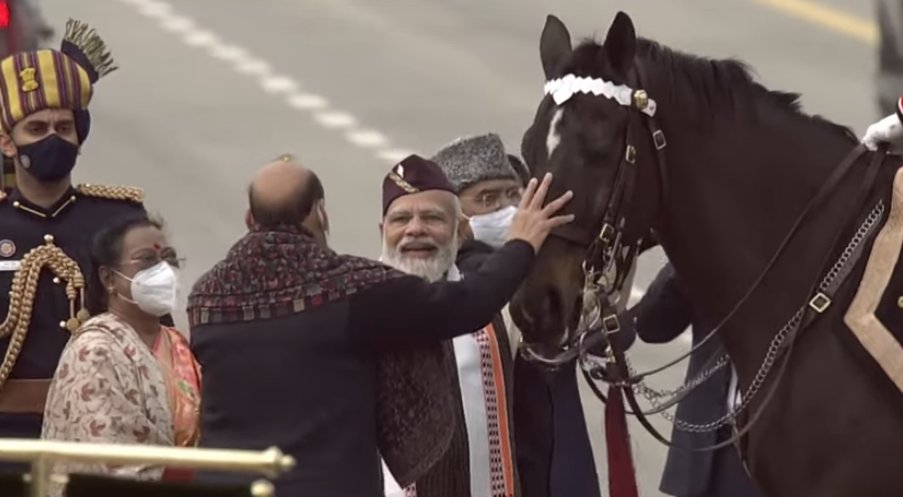 റിപ്പബ്ലിക് ദിനാഘോഷത്തിന് ശേഷം പ്രധാനമന്ത്രി നരേന്ദ്രമോദി നേരിട്ടെത്തി വിരാടിനെ തലോടുന്ന ദൃശ്യങ്ങള് ഇതിനോടകം സമൂഹമാധ്യമങ്ങളില് വൈറലാണ്. അത്ര ചില്ലറക്കാരനല്ല വിരാട് , പതിമൂന്ന് തവണ രാഷ്ട്രപതിയുടെ അംഗരക്ഷക സംഘത്തിലെ പ്രധാനകുതിരയായി റിപ്പബ്ലിക്ക് ദിനത്തിൽ പങ്കെടുത്തന്ന അപൂർവബഹുമതി വിരാടിന് മാത്രം സ്വന്തമാണ്.