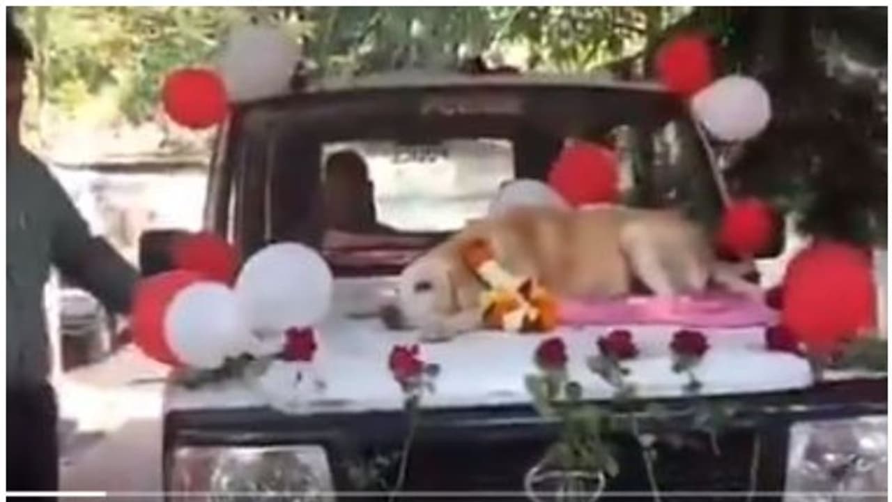 അലങ്കരിച്ച പൊലീസ് വാഹനത്തിലെ ബോണറ്റില് കയറ്റി, പൊലീസുകാരുടെ അകമ്പടിയോടെയാണ് ചടങ്ങ് നടത്തിയത്.