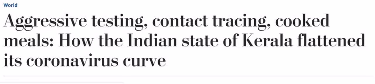 ദില്ലി: കൊറോണ വൈറസ് എന്ന മഹാമാരിയെ ഫലപ്രദമായി നേരിട്ട കേരളത്തിന്റെ പ്രവർത്തനങ്ങളെ പ്രകീർത്തിച്ച് പ്രമുഖ രാജ്യാന്തര മാധ്യമമായ വാഷിങ്ടൺ പോസ്റ്റ്. കൊവിഡിനെതിരെ കേരളാ സർക്കാർ സ്വീകരിച്ച നടപടികളെയും തീരുമാനങ്ങളെയും റിപ്പോർട്ടിൽ വിശദമായി വിലയിരുത്തുന്നു.