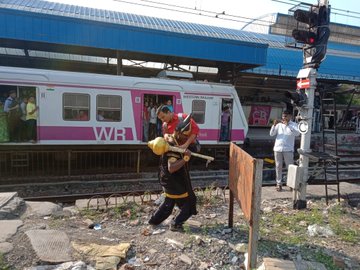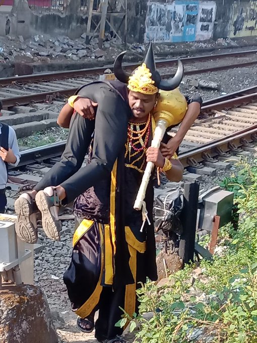 പാളങ്ങള് മുറിച്ച് കടക്കുന്നത് ശിക്ഷാര്ഹമാണ് എന്നിരിക്കെയാണ് നിരവധിയാളുകള് പാളങ്ങള് അശ്രദ്ധമായി മുറിച്ച് കടന്ന് അപകടത്തില്പ്പെടുന്നത്. പശ്ചിമ റെയില്വേയാണ് ഈ വേറിട്ട ബോധവല്ക്കരണത്തിന് പിന്നില്. കറുത്ത നിറമുള്ള നീളന് കുപ്പായവും ഗദയും കിരീടവുമായി ഭയപ്പെടുത്തുന്ന രൂപത്തിലാണ് കാലന് ട്രാക്കിലിറങ്ങിയത്. ട്രാക്ക് മുറിച്ച് കടക്കാന് ശ്രമിക്കുന്നവരെ കാലന് തോളിലെടുത്ത് തിരികെ പ്ലാറ്റ്ഫോമില് എത്തിക്കാന് തുടങ്ങിയതോടെ ആളുകള് ശ്രദ്ധിക്കാന് തുടങ്ങി.