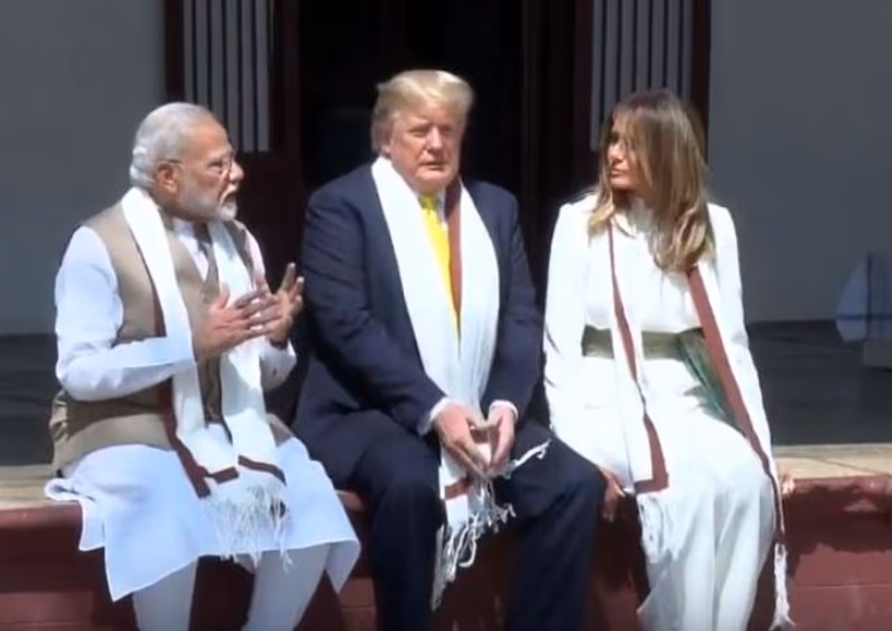 ചർക്കയിൽ നൂൽ നൂറ്റ്, മഹാത്മാഗാന്ധിയുടെ ഛായാചിത്രത്തിൽ ഖദർമാലയണിയിച്ച്, ഇരുവരും നടത്തിയ ആ സന്ദർശനത്തിന് ഒടുവിൽ പുറത്തെത്തിയ ഡോണൾഡ് ട്രംപ് ഇവിടെ സജ്ജീകരിച്ച കസേരയിലിരുന്ന് സന്ദർശക റജിസ്റ്ററിൽ ഒരു കുറിപ്പെഴുതി. എന്തെന്നല്ലേ?