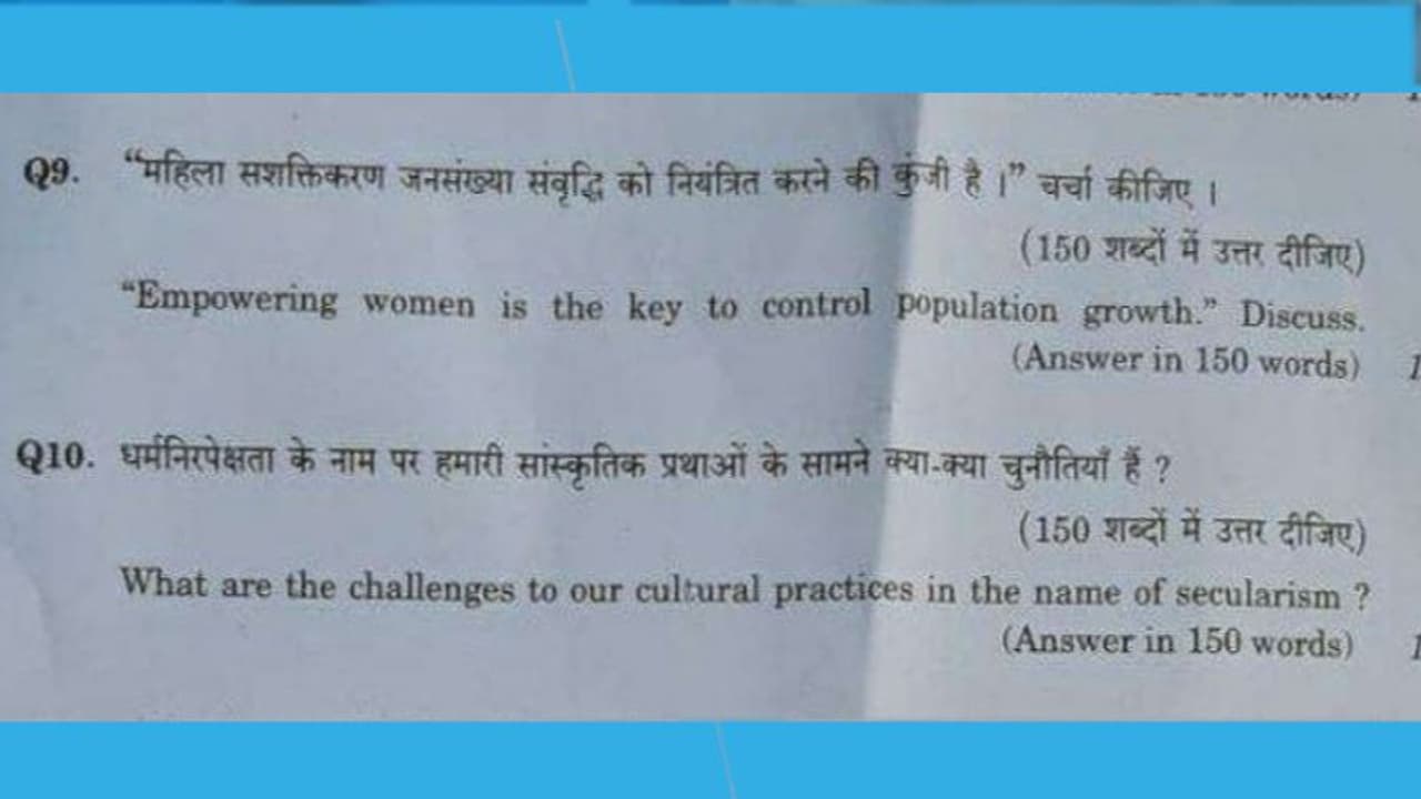 ആചാരങ്ങള്ക്ക് മതേതരത്വത്തിന്റെ പേരില് നേരിടുന്ന വെല്ലുവിളിയെന്താണെന്നാണ് 150 വാക്കില് വിശദമാക്കാനാണ് ചോദ്യ നമ്പര് 10 ആവശ്യപ്പെടുന്നത്