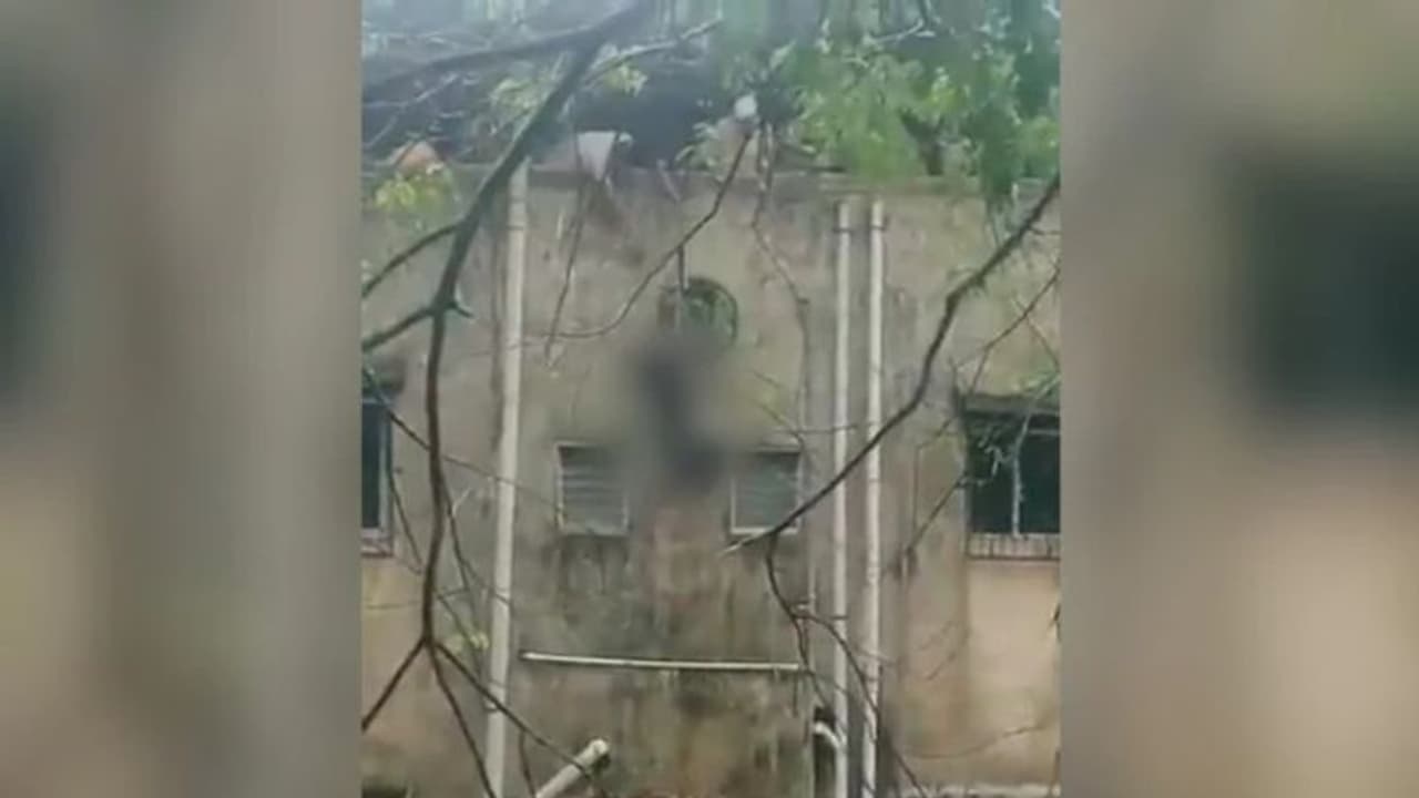 ടെറസിന് മുകളിൽ നിൽക്കുന്ന ആളുകൾ ഒരു കയറുപയോഗിച്ച് സ്ത്രീയെ മുകളിലേക്ക് വലിച്ചുകയറ്റാൻ ശ്രമിക്കുന്നതിനിടെ കൈവിട്ട് ഇവർ താഴേ വെള്ളത്തിലേക്ക് പതിക്കുകയായിരുന്നു.