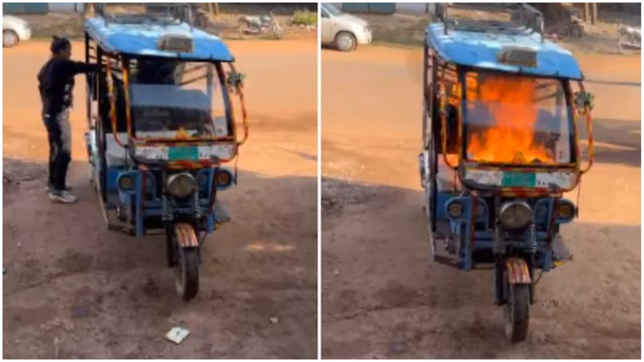നല്ല ജീവിതം കെട്ടിപ്പടുക്കണമെന്ന ആഗ്രഹത്തിൽ ലക്ഷങ്ങൾ ചെലവഴിച്ച് വാങ്ങിയ വാഹനമാണ് നടുറോഡിൽ കത്തിയമർന്നത്. ഇ-റിക്ഷയ്ക്ക് മുകളിൽ പെട്രോൾ ഒഴിച്ച ശേഷം യുവതി തീ കൊളുത്തുകയായിരുന്നു