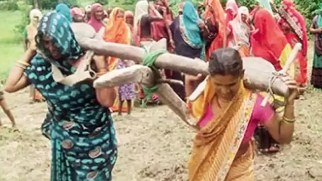 ഭോപ്പാൽ: മഴ ദൈവത്തെ പ്രീതിപ്പെടുത്താൻ കാളയ്ക്ക് പകരം കലപ്പ കഴുത്തിലിട്ട് നിലമുഴുത് സ്ത്രീകൾ. മധ്യപ്രദേശിലെ ബുന്ദേല്ഖണ്ഡിലാണ് ഈ വിചിത്ര സംഭവം. കഴിഞ്ഞ രണ്ട് ആഴ്ചയായി പ്രദേശത്ത് മഴ പെയ്തിട്ടില്ല. കൃഷികൾ നശിക്കുന്ന അവസ്ഥ എത്തിയതോടെയാണ് മഴ ദൈവങ്ങളെ പ്രതീപ്പെടുത്താൻ സ്ത്രീകൾ നിലം ഉഴാൻ തീരുമാനിച്ചത്.