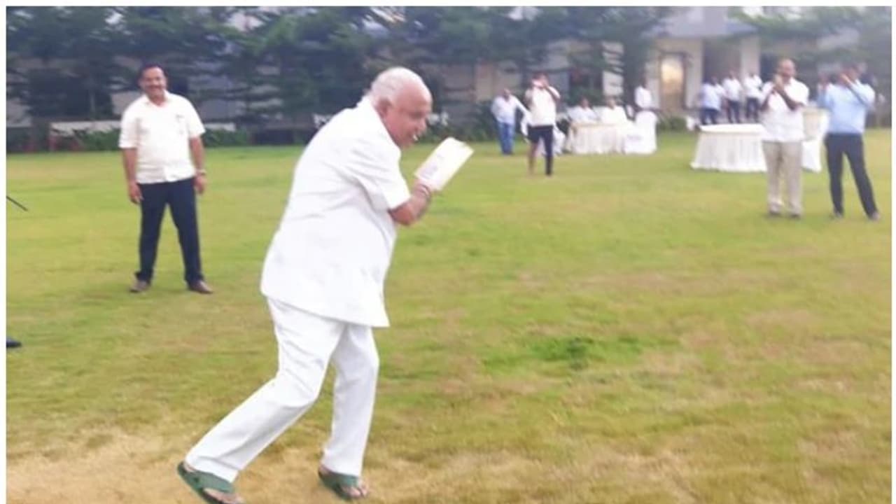 ഭരണം തുലാസിലായതിന്റെ ആശങ്കയില് മുഖ്യമന്ത്രിയും കൂട്ടരും നെട്ടോട്ടമോടുന്നതിനിടയിലാണ് ഏറെ ആസ്വദിച്ച് ക്രിക്കറ്റ് കളിക്കുന്ന യെദ്യൂരപ്പയുടെ ചിത്രം ബിജെപി മീഡിയ സെല് പുറത്തുവിട്ടത്. പാര്ട്ടി എംഎല്എമാരുമൊത്തായിരുന്നു യെദ്യൂരപ്പ ഗ്രൗണ്ടിലിറങ്ങിയത്.