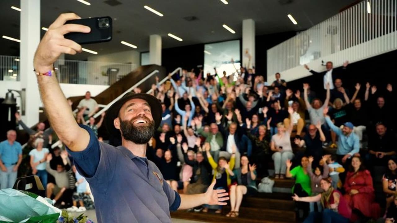 ജന്മനാട്ടിൽ തിരിച്ചെത്തിയ പെഡേഴ്സൺ കുടുംബത്തിനും സുഹൃത്തുക്കൾക്കുമൊപ്പം