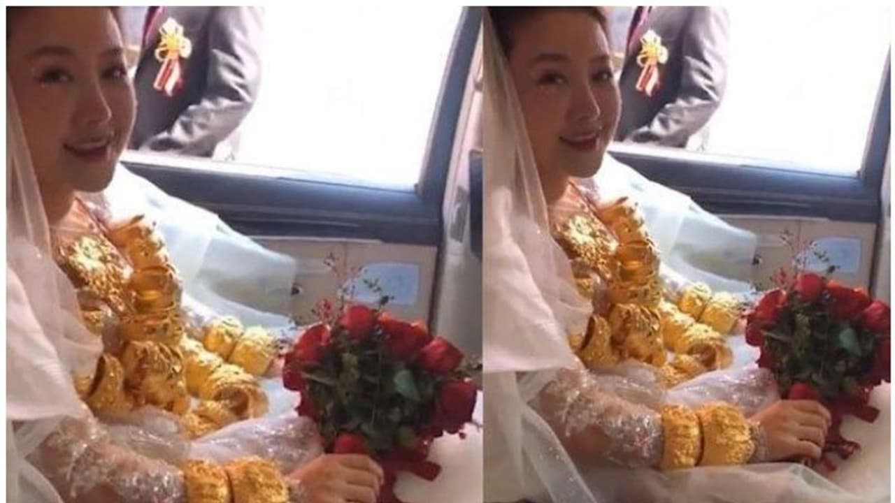 ചൈനയിലെ ഹുബൈ പ്രവിശ്യയിൽ നടന്ന ഒരു വിവാഹത്തിലാണ്, വധുവായി യുവതി അറുപതു കിലോയോളം ഭാരം വരുന്ന ആഭരണങ്ങൾ ധരിച്ച് വിവാഹ വേദിയിലെത്തി സകലരെയും ഞെട്ടിച്ചു കളഞ്ഞത്. നെക്ലേസുകളുടെയും വളകളുടെയും കമ്മലുകളുടെയും രൂപത്തിലാണ് ഇത്രയും സ്വർണ്ണം യുവതി ധരിച്ചത്. പ്രദേശത്തെ ഒരു സമ്പന്ന കുടുംബത്തിലെ അംഗമായ ഭാവി ഭർത്താവ് വിവാഹത്തിന് തനിക്കു നൽകിയ സമ്മാനമാണിത് എന്നായിരുന്നു യുവതിയുടെ വിശദീകരണം. ഇത്രയും ഭാരം വഹിക്കേണ്ടി വന്നതുകൊണ്ട് നടക്കാൻ പ്രതിശ്രുത വരന്റെ സഹായം തേടേണ്ടി വന്നു യുവതിക്ക്.