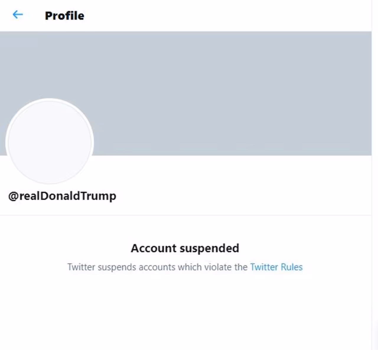 'ചോദിച്ച എല്ലാവരോടുമായി പറയുകയാണ്. ജനുവരി 20-നുള്ള സത്യപ്രതിജ്ഞാച്ചടങ്ങിന് ഞാൻ പോകില്ല', എന്നതായിരുന്നു ട്രംപിന്റെ അവസാനട്വീറ്റ്. ട്രംപിന്റെ അക്കൗണ്ട് വഴി വീണ്ടും അക്രമത്തിന് ആഹ്വാനം ചെയ്യപ്പെടാനുള്ള സാധ്യതയുള്ളതിനാൽ, സ്ഥിരമായി നിരോധിക്കുന്നുവെന്ന് ട്വിറ്റർ.