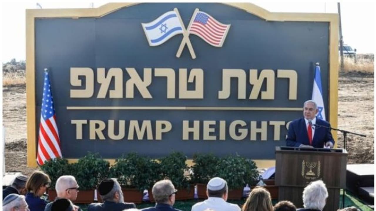 അമേരിക്കന് പ്രസിഡന്റ് ഡൊണാള്ഡ് ട്രംപിന് ആദരമര്പ്പിച്ചാണ് ഇസ്രായേലിന്റെ നടപടി. പ്രദേശത്ത് നിര്മാണ പ്രവര്ത്തനങ്ങള് തുടങ്ങുന്നതിന്റെ മുന്നോടിയായി ഇസ്രായേലിന്റെയും യുഎസിന്റെയു ദേശീയ പതാകയും ട്രംപ് ഹൈറ്റ്സ് എന്ന പേരടങ്ങുന്ന ശിലാഫലകവും ഇസ്രായേല് സ്ഥാപിച്ചിട്ടുണ്ട്.