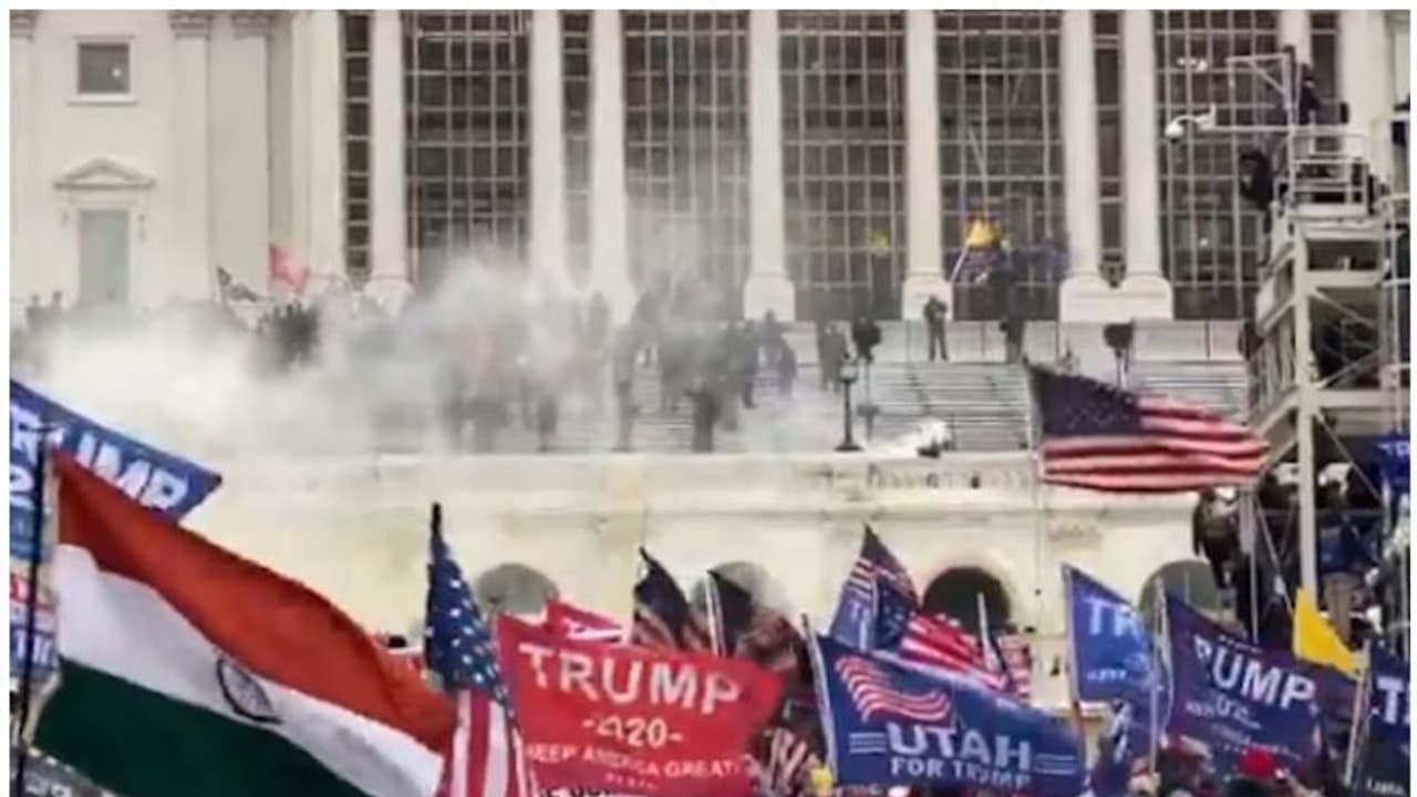 അക്രമങ്ങൾ തുടങ്ങി മിനിറ്റുകൾക്കുള്ളിൽ തന്നെ അതിന്റെ തത്സമയ ദൃശ്യങ്ങളും മാധ്യമങ്ങളിലൂടെ പ്രവഹിച്ചു തുടങ്ങി. അതെ സമയം തന്നെ ട്വിറ്ററിലും ഫേസ്ബുക്കിലും യൂട്യൂബിലും ഒക്കെ ഈ അക്രമങ്ങളുടെ വിഡിയോകൾ വൈറലാകാനും തുടങ്ങി. ഈ അക്രമങ്ങൾക്കിടെ, വീഡിയോ ദൃശ്യങ്ങളിൽ ഒന്നിൽ കണ്ട ഇന്ത്യയുടെ ത്രിവർണ്ണ പതാകയാണ് ഇപ്പോൾ സാമൂഹിക മാധ്യമങ്ങളിൽ ചർച്ചയായിട്ടുളളത്. ഇന്ത്യൻ വംശജനായിട്ടുള ആരോ ഒരാളും ട്രംപ് അനുകൂലികളായ ഈ പ്രതിഷേധക്കാരുടെ സംഘത്തിൽ ഉണ്ടായിരുന്നു എന്നത് വ്യക്തമാണ്. ഇന്ത്യൻ ദേശീയ പതാകയേന്തിയ ഒരാളും അക്രമികളുടെ കൂട്ടത്തിൽ ഉണ്ടായിരുന്നു എന്നത് ട്വിറ്ററിൽ പ്രചരിക്കുന്ന ഈ വീഡിയോയിൽ വളരെ വ്യക്തമായി കാണാം.