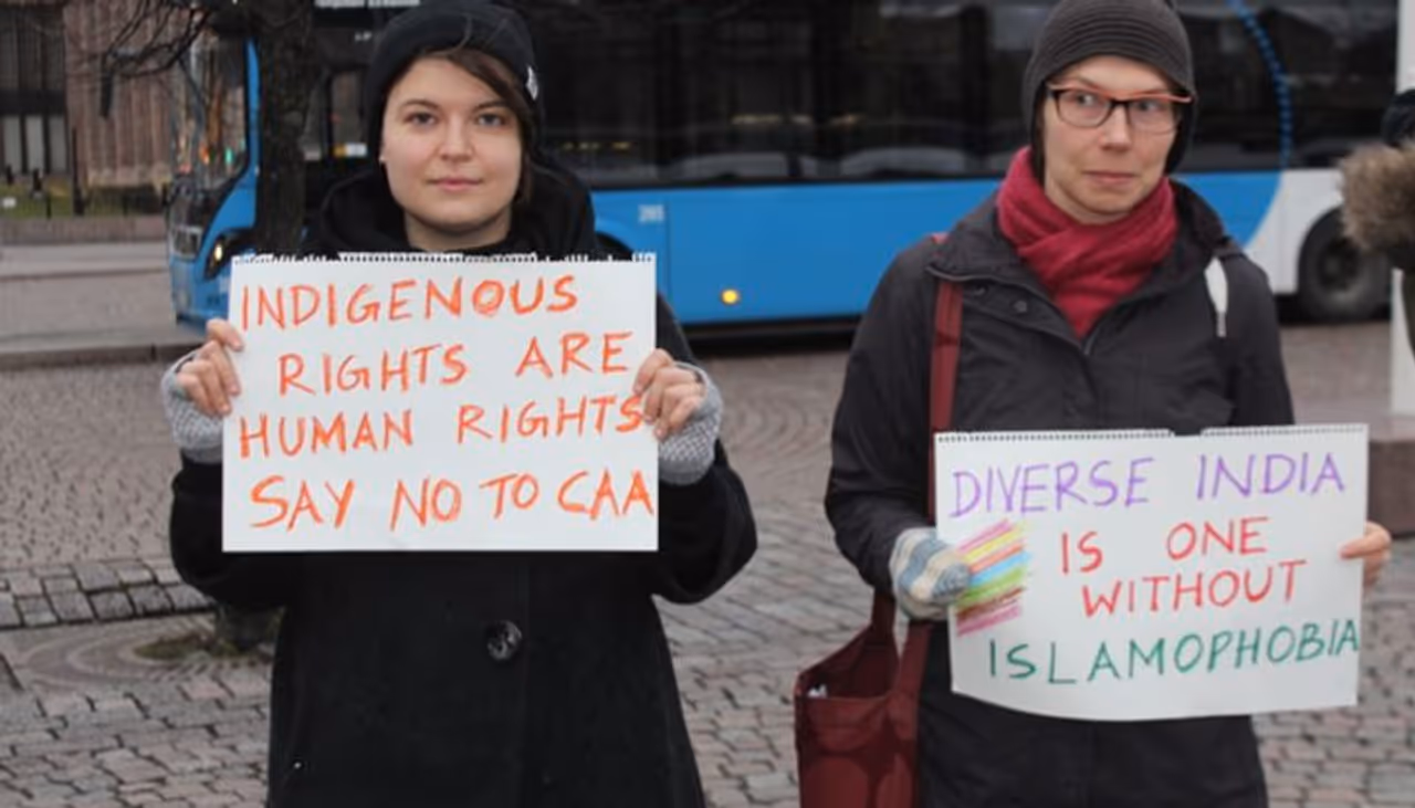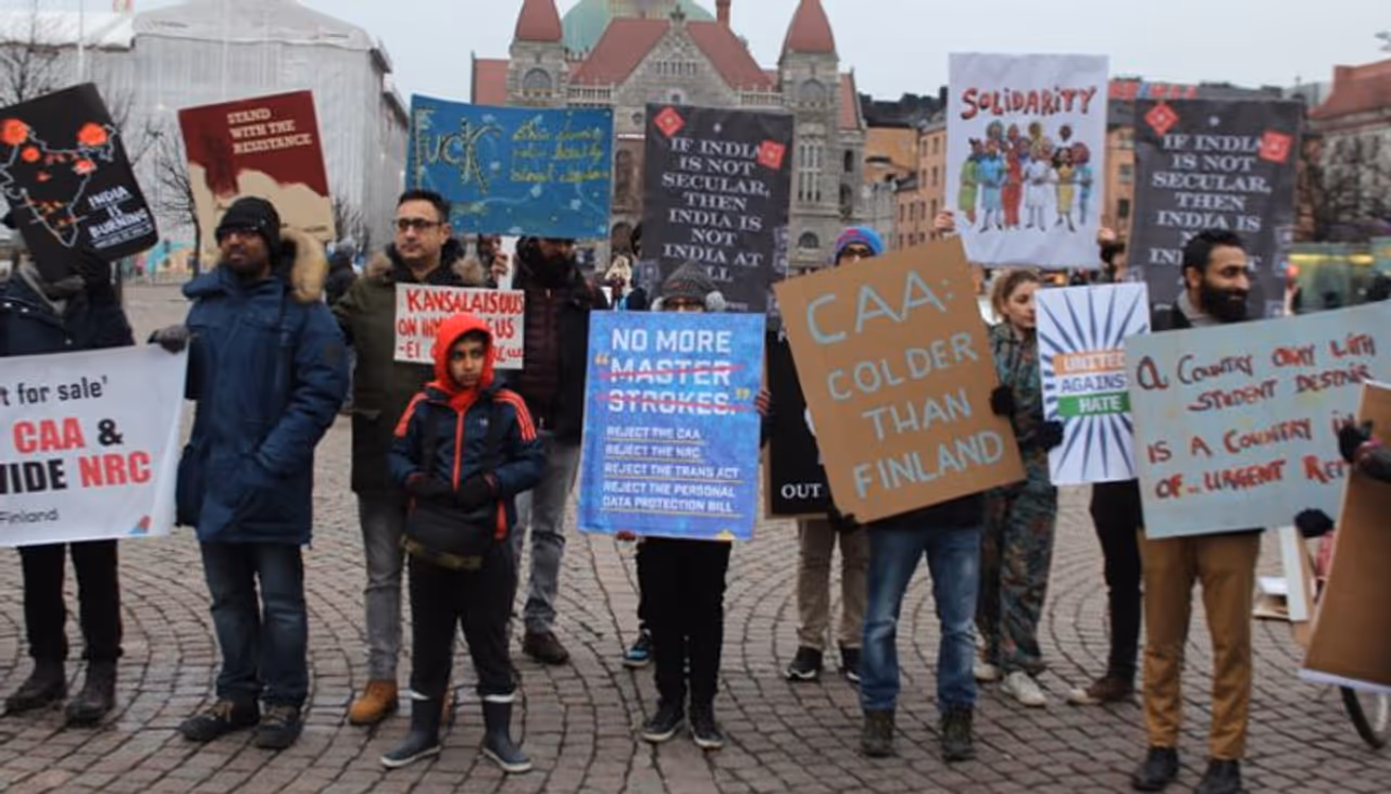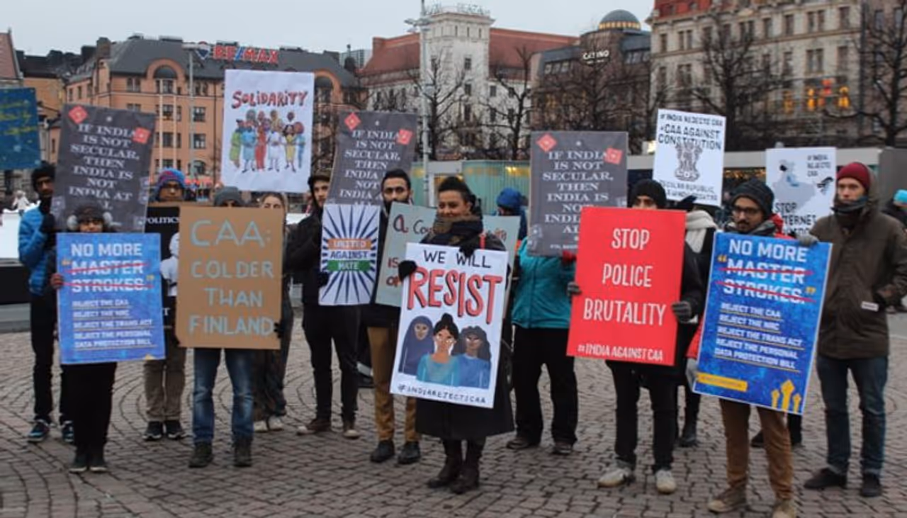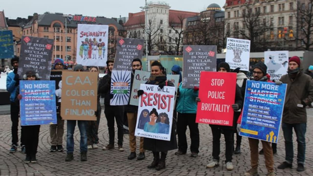 ഹെല്സിങ്കി (ഫിന്ലന്ഡ്): കൊടുംതണുപ്പില് പൗരത്വ നിയമഭേദഗതിക്കെതിരായ പ്രതിഷേധത്തില് ഭാഗമായി ഫിന്ലന്ഡിലെ ഇന്ത്യക്കാര്. ഹെല്സിങ്കി റെയില്വേ സ്റ്റേഷനിലായിരുന്നു ശനിയാഴ്ച രാവിലെ പ്രതിഷേധം സംഘടിപ്പിച്ചത്. ഹെൽസിങ്കി, വാസ, ടാംപെരെ, തുർകു, ലപ്പീൻറന്ത തുടങ്ങി വ്യത്യസ്ത നഗരങ്ങളിൽ നിന്നുള്ള 50 ഓളം പേർ പ്രതിഷേധത്തിന്റെ ഭാഗമായി.