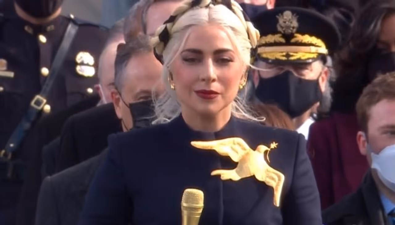 പോപ്പ് ഗായിക ലേഡി ഗാഗ സത്യപ്രതിജ്ഞ നടക്കുന്ന വേദിയിലെത്തി ദേശീയഗാനം ആലപിക്കുന്നു