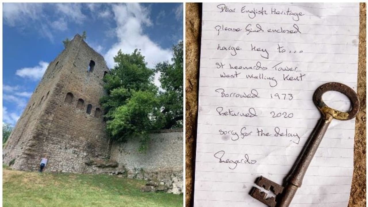 അന്പത് വര്ഷങ്ങള്ക്ക് മുന്പ് കാണാതായ 11ാം നൂറ്റാണ്ടിലെ ഗോപുരത്തിന്റെ താക്കോല് കണ്ടുകിട്ടി. ഇംഗ്ലണ്ടിലെ കെന്റിലെ വെസ്റ്റ് മാലിംഗിലുള്ള സെന്റ് ലിയോണാര്ഡ്സ് ഗോപുരത്തിന്റെ താക്കോലാണ് രസകരമായ ഒരു കുറിപ്പിനൊപ്പം തിരികെ ലഭിച്ചത്. 1973ല് കടമായി എടുത്തതാണെന്നും തിരികെ നല്കാനുണ്ടായ കാലതാമസത്തില് ക്ഷമിക്കണം എന്നും എഴുതിയ കുറിപ്പിനൊപ്പമാണ് താക്കോല് ഇംഗ്ലീഷ് ഹെറിറ്റേജിന് അയച്ച് നല്കിയത്.