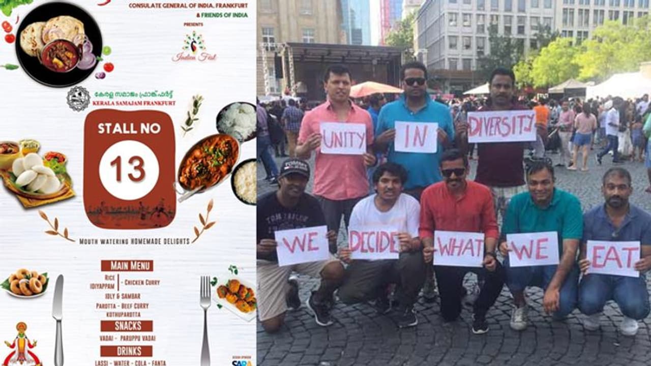 എന്നാല് ഇന്ത്യന് ഫെസ്റ്റ് അലങ്കോലമാകാത്ത രീതിയില് പ്രതിഷേധം പ്രകടിപ്പിക്കാനും മലയാളികള് മറന്നില്ല. നാനാത്വത്തിലെ ഏകത്വമാണ് ഇന്ത്യന് സംസ്കാരം, എന്ത് കഴിക്കണമെന്നത് സ്വന്തം തീരുമാനമെന്ന പ്രതിഷേധക്കാര്ഡുകള് ഉയര്ത്തി മലയാളികള് ഫ്രാങ്ക്ഫര്ട്ടില് പ്രതിഷേധം രേഖപ്പെടുത്തി.