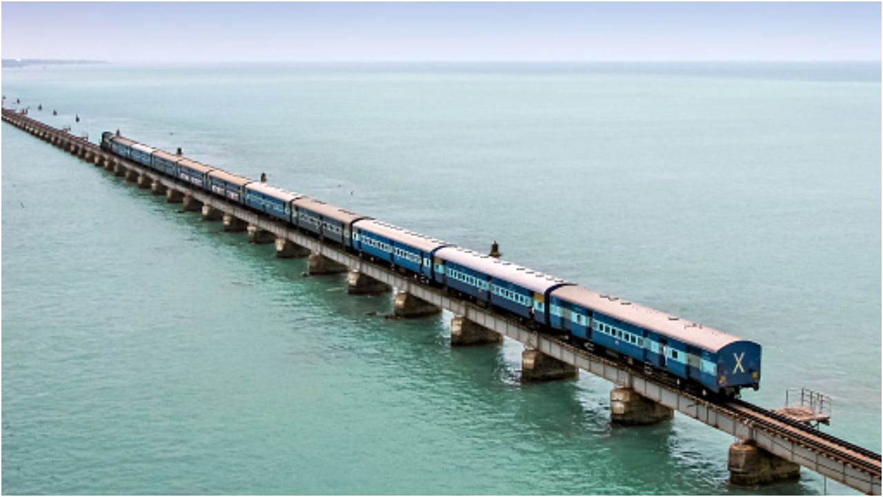 ചെന്നൈ രാമേശ്വരം റെയിൽപ്പാതയാണ് അടുത്തത്. രണ്ട് കിലോമീറ്ററിലധികം ദൂരത്തിൽ കടലിനു കുറുകെ നീളുന്ന ചെന്നൈ–രാമേശ്വരം റെയിൽ പാത ഒരേ സമയം അതിമനോഹരവും പേടിപ്പെടുത്തുന്നതുമാണ്. 1914-ൽ നിർമ്മിച്ച ചരിത്രപ്രസിദ്ധമായ ഈ കടൽപാലത്തിലൂടെയുള്ള യാത്രയിൽ, മിനിറ്റുകളോളം കര കാണാൻ കഴിയില്ല. ചുറ്റും അനന്തമായ കടൽ മാത്രം. കാഴ്ചയ്ക്ക് എത്രത്തോളം മനോഹരമാണോ അത്രത്തോളം തന്നെ നെഞ്ചിടിപ്പ് വർദ്ധിപ്പിക്കുന്ന ഒന്നാണ് ഈ യാത്ര. 1964 ഡിസംബറിൽ വീശിയടിച്ച ചുഴലിക്കാറ്റിൽ പാമ്പൻ-ധനുഷ്കോടി പാസഞ്ചർ അപടത്തിൽപ്പെടുകയും 150ഓളം യാത്രക്കാർക്ക് ജീവൻ നഷ്ടപ്പെടുകയും ചെയ്തിരുന്നു. ഈ പഴയ പാലത്തിന് പകരമായാണ് വെർട്ടിക്കൽ ലിഫ്റ്റുള്ള പുതിയ പാമ്പൻ പാലമെത്തിയത്.
