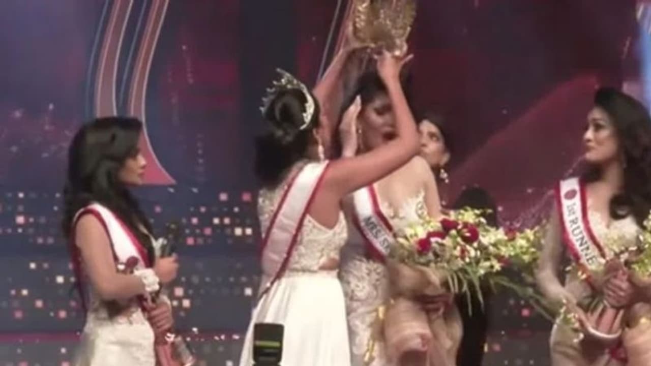 കൊളമ്പോ: ശ്രീലങ്കയിൽ നടന്ന മിസിസ് ശ്രീലങ്ക മത്സരത്തിന്റെ പുരസ്കാരം നൽകുന്നതിനിടെ വിജയിയെ അപമാനിക്കാൻ ശ്രമിച്ചെന്ന കേസിൽ മിസിസ് വേൾഡ് പൊലീസ് പിടിയിൽ. പുരസ്കാരം സമ്മാനിക്കുന്നതിനിടെ സ്റ്റേജിൽ വച്ച് മിസിസ് ശ്രീലങ്കയോട് അപമര്യാദയായി പെരുമാറുകയായിരുന്നു. മിസിസ് ശ്രീലങ്കയുടെ തലയിൽസ നിന്ന് കരോലിൻ ജൂറി കിരീടം വലിച്ചൂരുകയായിരുന്നു.