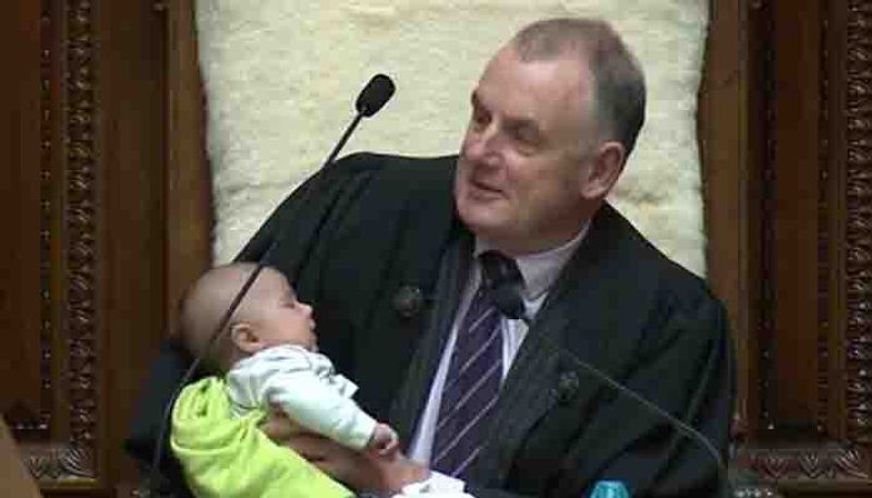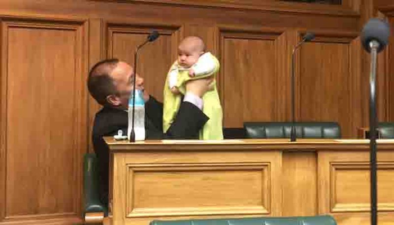 ക്രൈസ്റ്റ്ചര്ച്ച്: ന്യൂസീലാന്ഡ് പാര്ലമെന്റില് എംപിമാരുടെ ചര്ച്ച പുരോഗമിക്കവെ, സ്പീക്കറോടൊപ്പമുള്ള പുതിയ അതിഥി ലോകമാധ്യമങ്ങളില് ചര്ച്ചയായി. സ്പീക്കര് ട്രെവര് മല്ലാര്ഡ് കുഞ്ഞിനെ പരിചരിച്ച് കുപ്പിപാല് നല്കുന്ന ചിത്രങ്ങളും വീഡിയോയും വൈറലായിരിക്കുകയാണ്. ചര്ച്ച മുടങ്ങാതിരിക്കാന് എംപി ടാമറ്റി കോഫിയാണ് പിഞ്ചുകുഞ്ഞിനെയുമെടുത്ത് പാര്ലമെന്റിലെത്തിയത്.