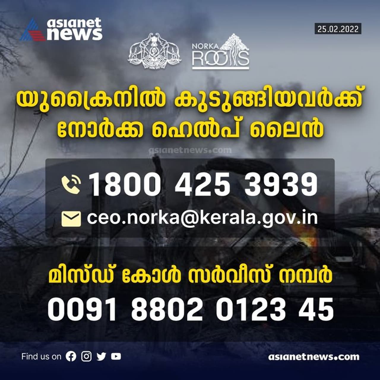 തിരുവനന്തപുരം/ കീവ്: യുക്രൈനില് (Ukraine) യുദ്ധ സ്ഥലത്ത് ഒറ്റപ്പെട്ട് പോയ മലയാളികളെ കണ്ടെത്താനുള്ള ശ്രമങ്ങൾ നടക്കുകയാണെന്ന് നോർക്ക വൈസ് ചെയർമാൻ (Norka Vice Chairman). ഇന്നലെയും ഇന്നുമായി 550 പേർ യുക്രൈനിൽ നിന്ന് ബന്ധപ്പെട്ടു. എല്ലാവരുടേയും വിശദാംശങ്ങൾ വിദേശകാര്യ മന്ത്രാലയത്തിന് കൈമാറിയിട്ടുണ്ടെന്നും നോർക്കയിൽ രജിസ്റ്റർ ചെയ്യാത്തവരുണ്ടെങ്കിൽ എത്രയും വേഗം ബന്ധപ്പെടണമെന്നും നോർക്ക വൈസ് ചെയർമാൻ ഏഷ്യാനെറ്റ് ന്യൂസിനോട് പറഞ്ഞു. അതേസമയം പലര്ക്കും എംബസിയെ ബന്ധപ്പെടാന് കഴിയുന്നില്ലെന്ന് യുക്രൈനില് നിന്നുള്ള മലയാളി വിദ്യാര്ത്ഥിനികള് (Malayali Students) ഏഷ്യാനെറ്റ് ന്യൂസിനോട് പറഞ്ഞു. ബങ്കറുകളില് വെള്ളവും ഭക്ഷണവും തീരുമെന്ന ആശങ്കയിലാണ് തങ്ങളെന്നും കൊടുംതണുപ്പിലാണ് കഴിയുന്നതെന്നും വിദ്യാര്ത്ഥികള് വിവരിച്ചു.