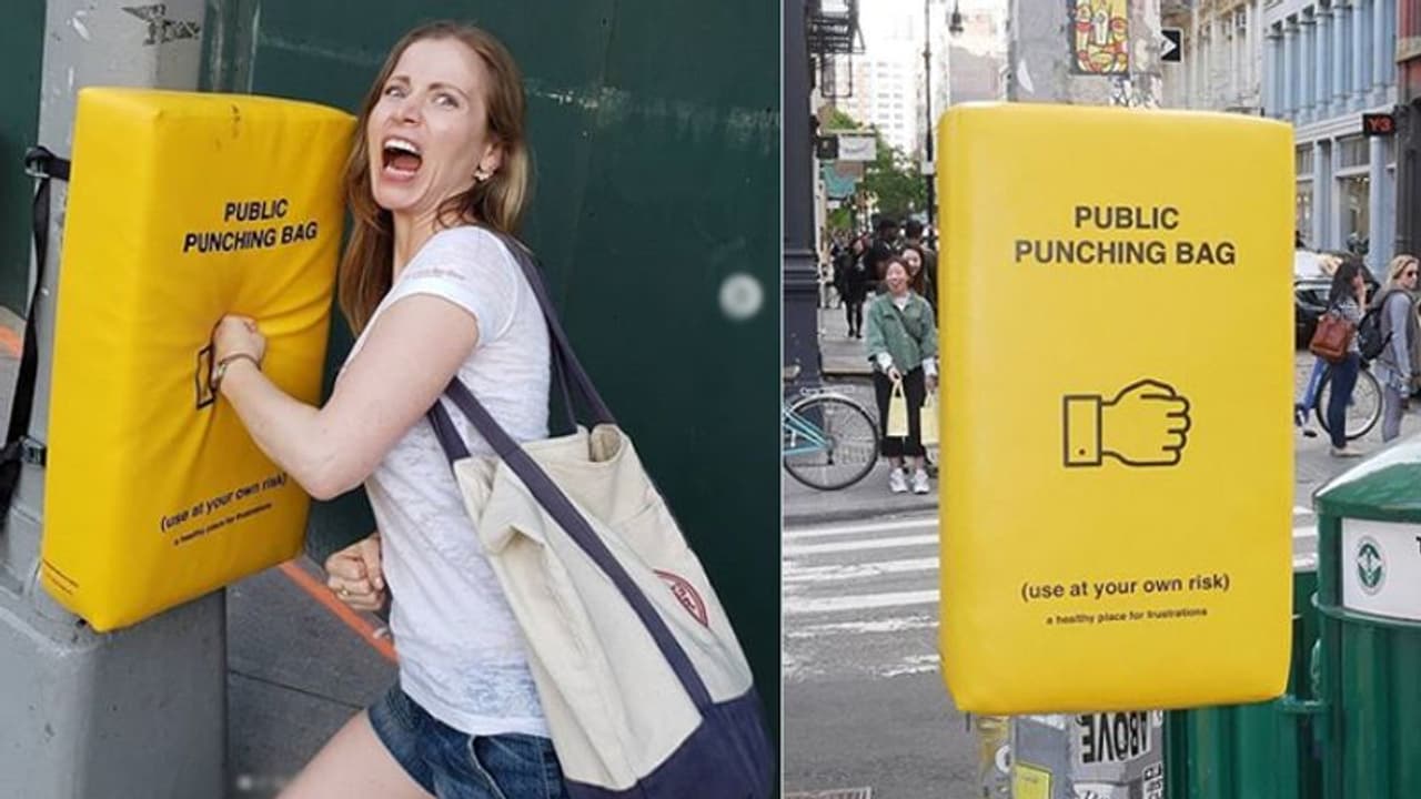 ആളുകൾക്ക് ഇടിച്ച് നിരപ്പാക്കാനായി തെരുവോരങ്ങളിൽ പഞ്ചിങ് ബാഗ് സ്ഥാപിച്ചിരിക്കുകയാണ് യുഎസ് ഡിസൈൻ സ്റ്റുഡിയോ. മൻഹട്ടൻ തെരുവിലെ താമസക്കാർക്കായി ഡോൺഡ് അറ്റാക്ക് ദിസ് ഈസ് ദ റോങ് വെ എന്ന സംഘടനയുടെ നേതൃത്വത്തിലാണ് ഡിസൈൻ സ്റ്റുഡിയോ പഞ്ചിങ് ബാഗ് സ്ഥാപിച്ചത്.