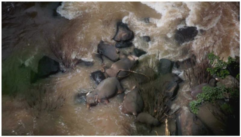 രാത്രിയില് പെരുമഴ പെയ്തതാകാം അപകടത്തിന് കാരണമെന്ന് അധികൃതര് പറഞ്ഞു. രക്ഷാപ്രവര്ത്തനത്തിനായി വെള്ളച്ചാട്ടത്തിലേക്കുള്ള സന്ദര്ശനം നിര്ത്തിവെച്ചു. 1992ല് ഇതേ വെള്ളച്ചാട്ടത്തില് വീണ് എട്ട് ആനകള് ചത്തിരുന്നു.