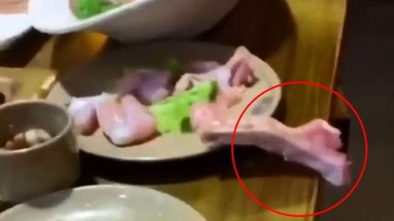 മേശപ്പുറത്തിരിക്കുന്ന പാത്രത്തിലെ ഇറച്ചിക്കഷ്ണങ്ങളിലൊന്ന് ചലിച്ച് മേശക്കരികിലേക്ക് വരികയും അത് മേശയില് നിന്ന് താഴേക്ക് ചാടുകയും ചെയ്യുന്നത് വീഡിയോയില് കാണാം. അതേസമയം തന്നെ പശ്ചാത്തലത്തില് ഇതുകണ്ടുനില്ക്കുന്നവരുടെ നിലവിളിയും കേള്ക്കാം.