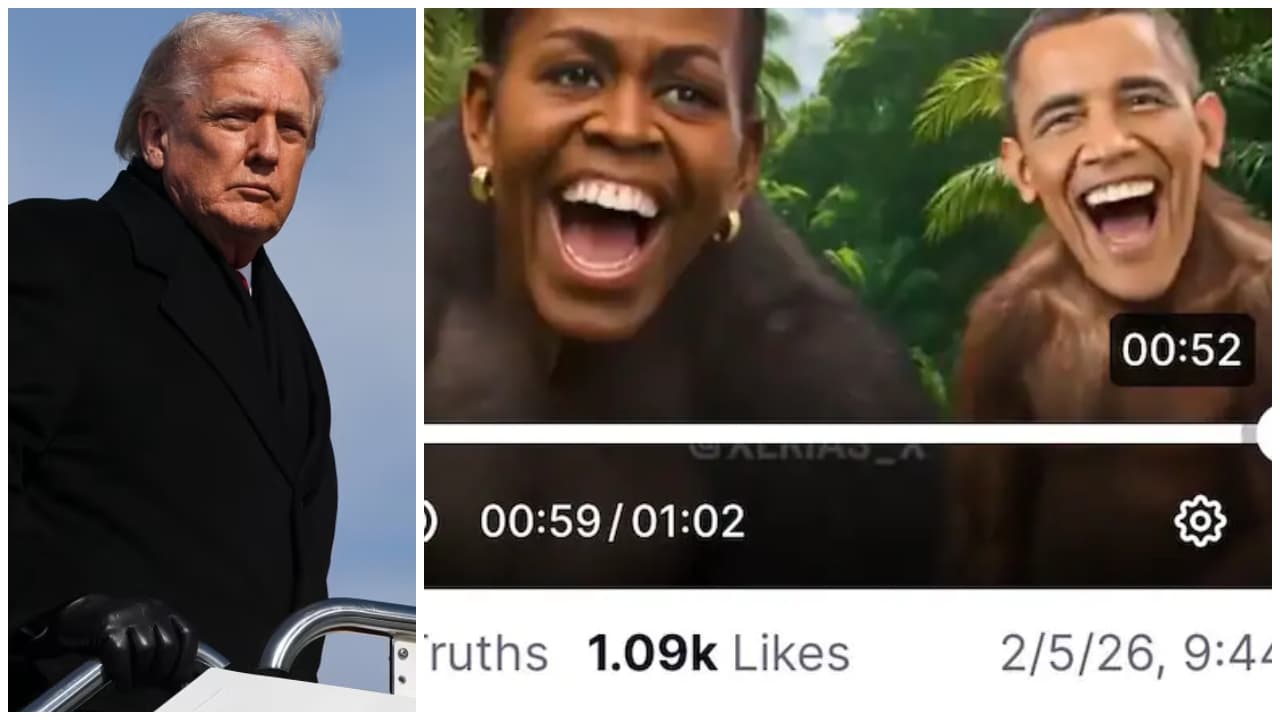 മുൻ പ്രസിഡന്റ് ബരാക് ഒബാമയെയും മിഷേൽ ഒബാമയെയും കുരങ്ങുകളായി ചിത്രീകരിക്കുന്ന വംശീയ വീഡിയോ യുഎസ് പ്രസിഡന്റ് ഡോണാൾഡ് ട്രംപ് സോഷ്യൽ മീഡിയയിൽ പങ്കുവെച്ചു. ഇതിനെതിരെ അമേരിക്കയിൽ വ്യാപക പ്രതിഷേധം ഉയരുകയാണ്.