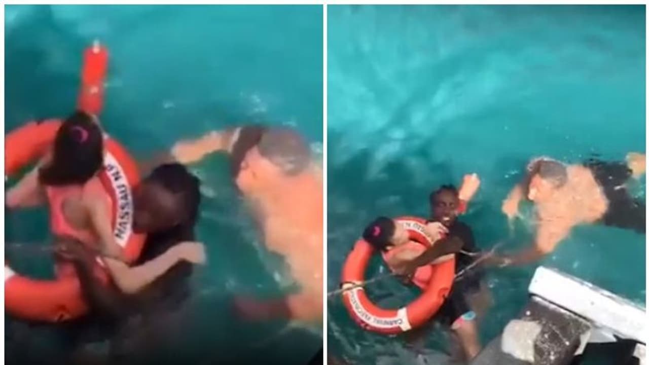 യുഎസിലെ വെര്ജിന് ദ്വീപുസമൂഹത്തിലെ സെന്റ് തോമസ് ദ്വീപ് സ്വദേശികളാണ് ഹാമില്ട്ടണും ഡോനോവാനും. ഓഗസ്റ്റ് 12 നാണ് കപ്പലില് അതിഥിയായെത്തിയ യുവതി കടലിലേക്ക് പതിച്ചത്. യുവതി ഇരുന്ന വീല്ചെയര് നിയന്ത്രണം തെറ്റി കടലിലേക്ക് വീഴുകയായിരുന്നു. കപ്പലില് ഉണ്ടായിരുന്നവര് ബഹളം വച്ചതോടെയാണ് സംഭവം യുവാക്കളുടെ ശ്രദ്ധയില്പ്പെട്ടത്. വീല്ചെയറിന്റെ ഭാരം കൊണ്ട് കടലിലേക്ക് താഴ്ന്നുപോകുകയായിരുന്ന യുവതിയെ ഹാമില്ട്ടണും ഡോനോവാനും ചേര്ന്ന് സാഹസികമായാണ് രക്ഷപ്പെടുത്തിയത്. യുവതിയെ ശരീരത്തോട് ചേര്ത്തുകെട്ടി ഇവര് മുകളിലേക്ക് നീന്തി. തുടര്ന്ന് രക്ഷാപ്രവര്ത്തകരെത്തി മൂന്നുപേരെയും രക്ഷിക്കുകയായിരുന്നു. സിഎന്എന് ആണ് വീഡിയോ ട്വിറ്ററില് പങ്കുവെച്ചത്.