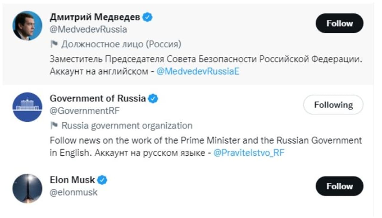 പുടിന് ഇപ്പോഴും മസ്കിനെ ട്വിറ്ററില് പിന്തുടരുന്നു. 22 പേരെയാണ് പുടിന് ട്വിറ്ററില് പിന്തുടരുന്നത്.