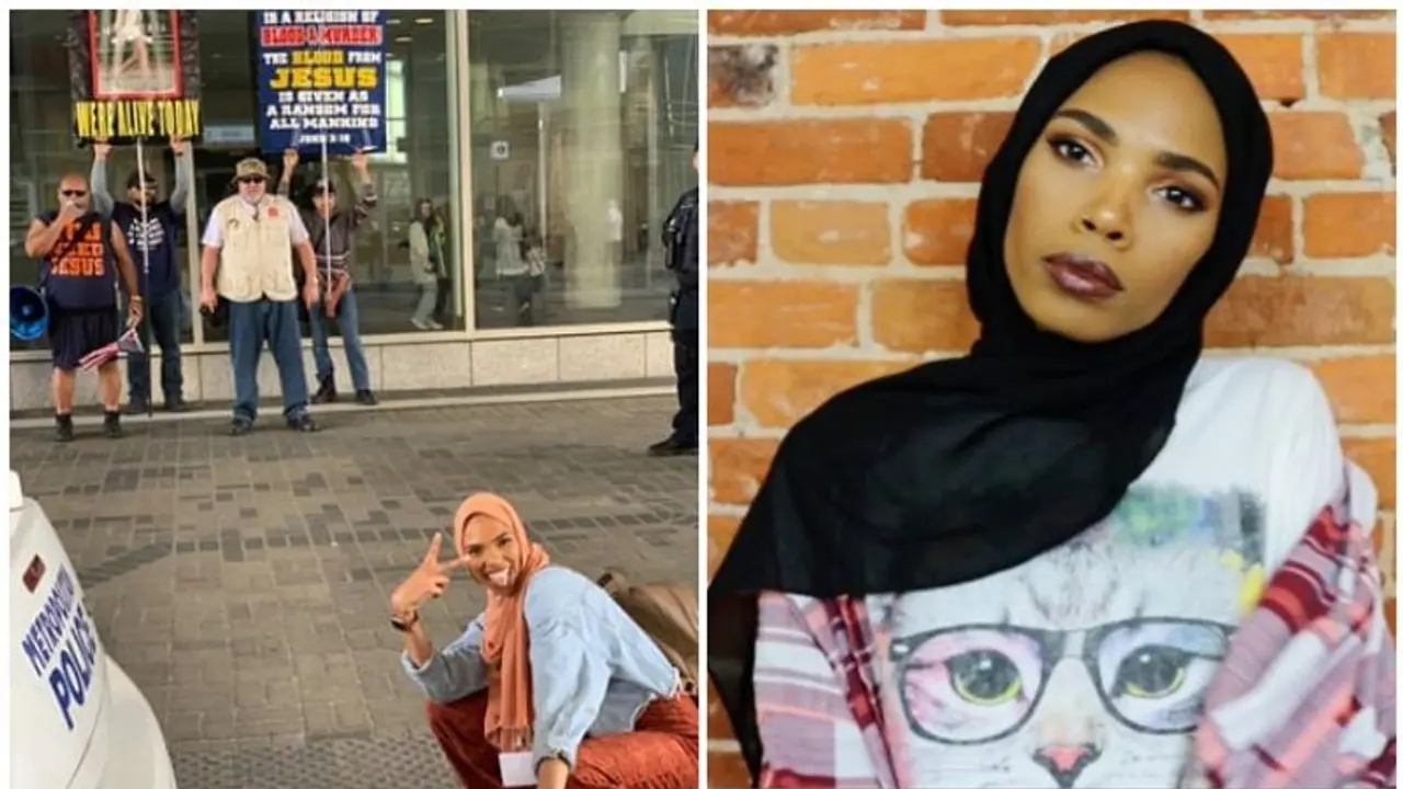 കോണ്ഫറന്സില് പങ്കെടുത്ത് മടങ്ങുന്നതിനിടെയാണ് ഇസ്ലാം വിരുദ്ധ പ്ലക്കാര്ഡുകളുമായി പ്രതിഷേധിക്കുന്നവരെ ശൈമ കാണുന്നത്. തുടര്ന്ന് അവര്ക്ക് മുന്നിലിരുന്ന നിറഞ്ഞ ചിരിയുമായി ചിത്രമെടുക്കുകയായിരുന്നു.