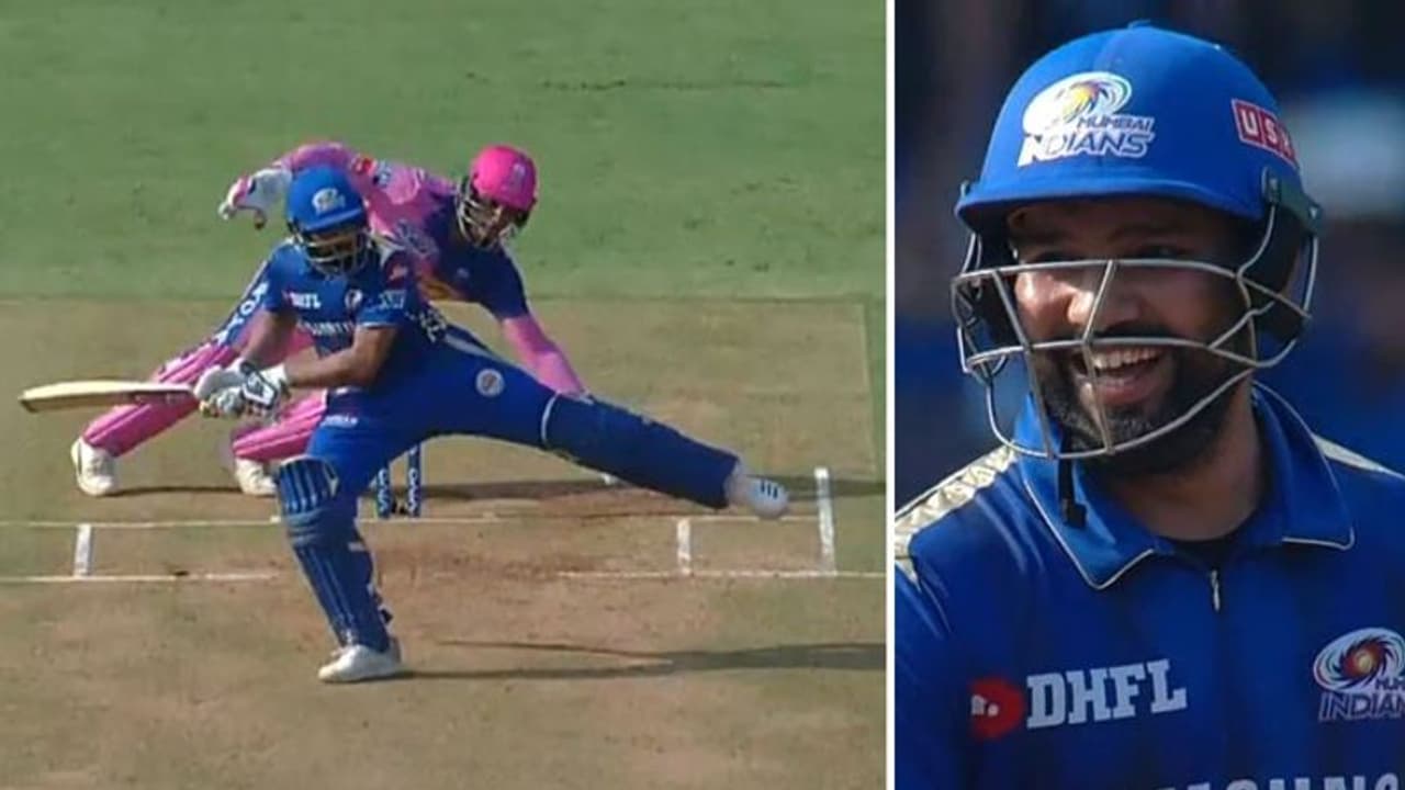 സ്റ്റംപിങ് ഒഴിവാക്കാന് മുംബൈ ഇന്ത്യന്സ് ക്യാപ്റ്റന് രോഹിത് ശര്മയുടെ കാല്പന്തുകളി. രാജസ്ഥാന് റോയല്സിനെതിരായ മത്സരത്തില് 10ാം ഓവറിന്റെ അഞ്ചാം പന്തിലാണ് സംഭവം. പന്തെറിയുന്നത് കൃഷ്ണപ്പ ഗൗതം.