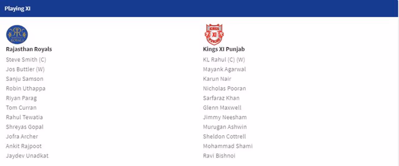രണ്ട് മാറ്റങ്ങളുമായാണ് രാജസ്ഥാന് ഇറങ്ങിയത്. രാജസ്ഥാന് നിരയില് ഇംഗ്ലീഷ് സ്റ്റാര് ബാറ്റ്സ്മാന് ജോസ് ബട്ട്ലറുടെ തിരിച്ചുവരവാണ് ശ്രദ്ധേയം. ഡേവിഡ് മില്ലറാണ് ബട്ട്ലര്ക്ക് വഴിമാറിയത്. അങ്കിത് രജ്പുതാണ് ഇലവനിലെത്തിയ മറ്റൊരു താരം. അതേസമയം പഞ്ചാബ് ഇന്നും ക്രിസ് ഗെയ്ലിന് അവസരം നല്കിയിട്ടില്ല. ഫോമിലല്ലെങ്കിലും നിക്കോളാസ് പുരാനെ നിലനിര്ത്തി.