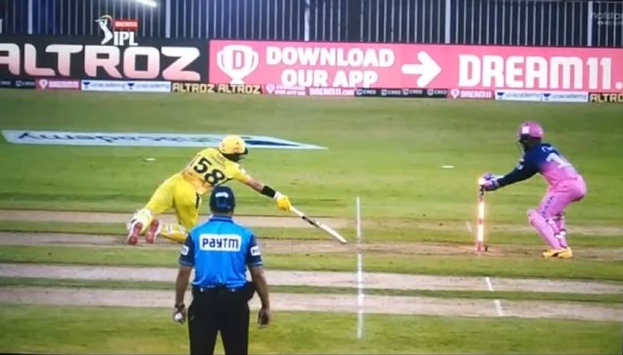കറന് പിന്നാലെ ക്രീസിലെത്തിയ യുവതാരം റിതുരാജ് ഗെയ്ക്വാദ് ആദ്യ പന്തില് തന്നെ ക്രീസില് നിന്ന് ചാടിയിറങ്ങി. അടിതെറ്റിയ ഗെയ്ക്വാദിന് തിരിച്ചുവരവിന് യാതൊരു അവസരവും നല്കാതെ സഞ്ജു വിക്കറ്റ് തെറിപ്പിച്ചു. തിരിഞ്ഞുപോലും നോക്കാതെ ഗെയ്ക്വാദ് ക്രീസ് വിട്ടു. നേരത്തെ ബാറ്റിംഗില് തിളങ്ങിയ സഞ്ജുവിന് വിക്കറ്റിന് പിന്നിലും തിളങ്ങാനായത് ഇരട്ടിമധുരമായി.