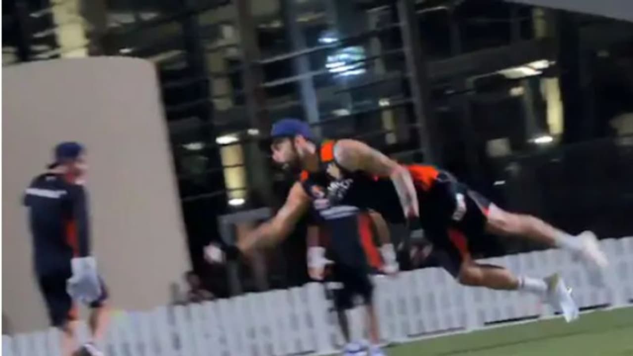പരിശീലന സെഷനില് മുഴുനീള ഡൈവിംഗ് ക്യാച്ചുമായാണ് കിംഗ് കോലി താരമായത്. കോലിപ്പറക്കലിന്റെ വീഡിയോ ആര്സിബി ട്വിറ്ററില് പങ്കുവെച്ചു. പാര്ത്ഥീവ് പട്ടേല്. എ ബി ഡിവില്ലിയേഴ്സ് തുടങ്ങിയവരും ഫീല്ഡിംഗ് പരിശീലനത്തില് പങ്കെടുത്തു. വിക്കറ്റിന് പിന്നിലായിരുന്നു എബിഡിയുടെ പരിശീലനം.