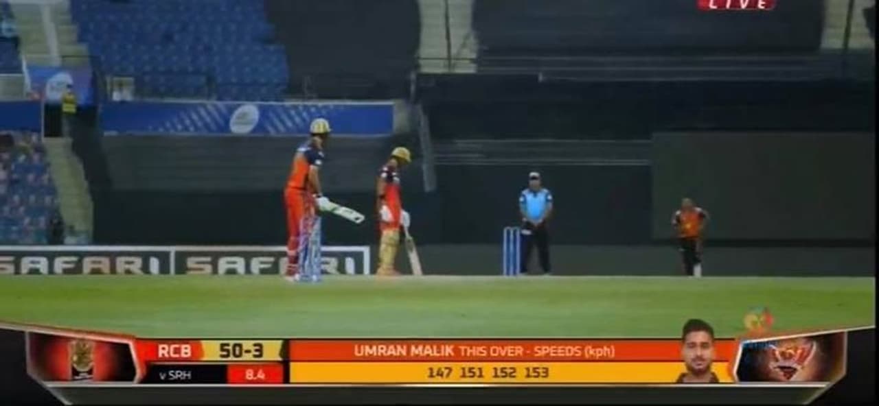 മത്സരത്തിന്റെ ഒമ്പതാം ഓവറിലായിരുന്നു ഉമ്രാന് മാലിക്കിന്റെ വേഗമേറിയ പന്ത് പിറന്നത്. ഓവറിലെ ആദ്യ പന്ത് 147 വേഗത്തിലായിരുന്നു. രണ്ടാം പന്താകട്ടെ 151 കിലോ മീറ്റര് വേഗത്തിലും. 152 കിലോ മീറ്റര് വേഗത്തിലെറിഞ്ഞ മൂന്നാം പന്തിനുശേഷമാണ് ഉമ്രാന് മാലിക്ക് നാലാം പന്ത് 153 കിലോ മീറ്റര് വേഗത്തിലെറിഞ്ഞ് റെക്കോര്ഡിട്ടത്. മലയാളി താരം ദേവ്ദത്ത് പടിക്കലിനുനേരെയെറിഞ്ഞ ഫുള്ടോസായിരുന്നു 153 കിലോ മീറ്റര് വേഗം രേഖപ്പെടുത്തിയത്.