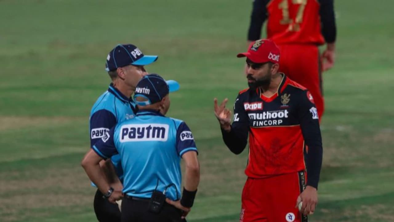 രാഹുല് ത്രിപാഠിക്കെതിരായ യുസ്വേന്ദ്ര ചഹലിന്റെ എല്ബിഡബ്ലിയു അപ്പീല് അംപയര് വിരേന്ദര് ശര്മ നിരസിച്ചപ്പോഴാണ് കോലി നിയന്ത്രണം വിട്ടത്. പന്ത് നിലത്തെറിഞ്ഞ കോലി അംപയറുമായി തര്ക്കിച്ചു.