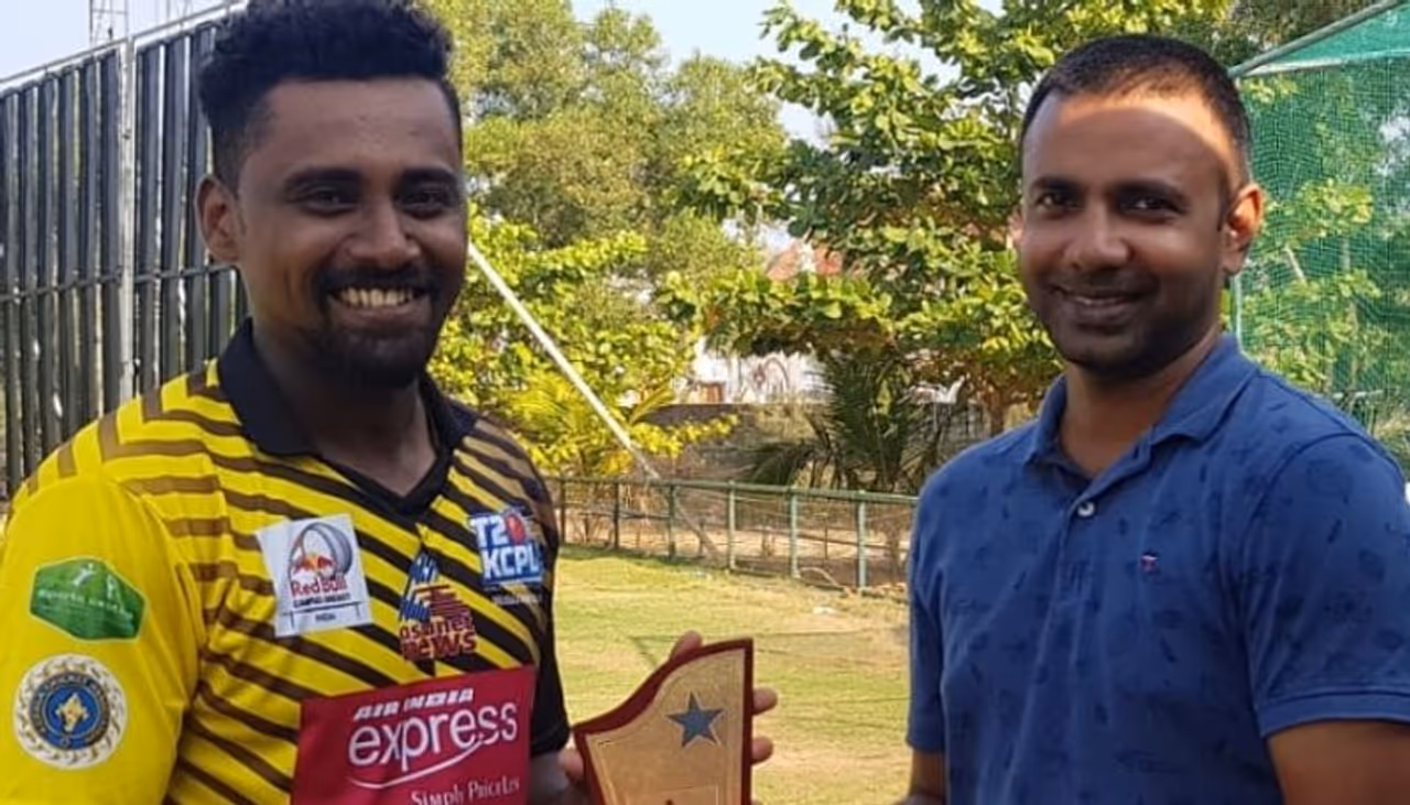 ശ്രീ കേരള വർമ്മ കോളേജിൽ വേണ്ടി വിഷ്ണു വിശ്വം അഞ്ച് വിക്കറ്റ് നേടി