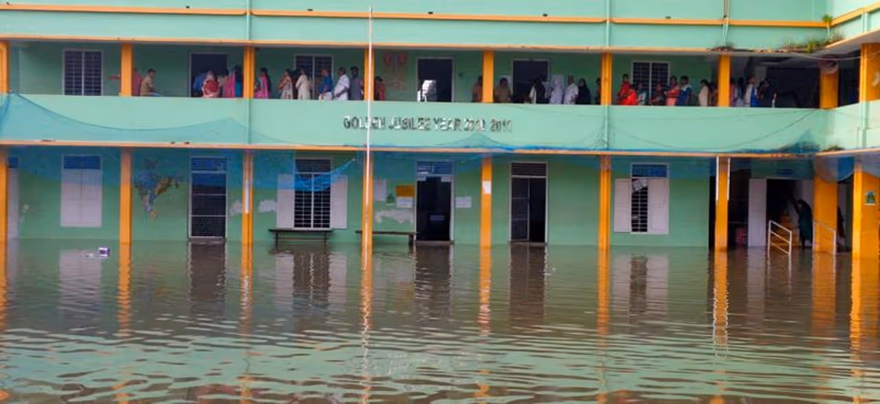 മഴക്ക് ശമനം ആയതോടെ വെള്ളക്കെട്ടിനെ അവഗണിച്ച് അയ്യപ്പൻ കാവ് ശ്രീ നാരായണ ഹയർസെക്കൻഡറി സ്കൂളിലെ ക്യൂ .....