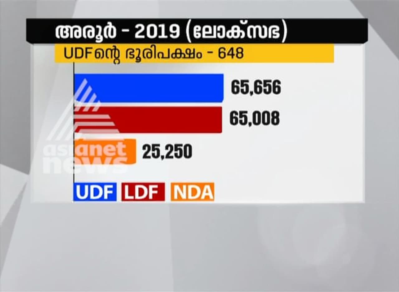 അപ്രായോഗികമെന്ന് പലപ്പോഴും തോന്നിയെങ്കിലും ശബരിമല തരംഗത്തിൽ എൽഡിഎഫ് തകർന്നടിഞ്ഞു. 19 മണ്ഡലങ്ങളിലും യുഡിഎഫ് ജയിച്ച് കയറി. പക്ഷേ, ഒരു മണ്ഡലത്തിൽ മാത്രം ഇഞ്ചോടിഞ്ച് പോരാട്ടം നടക്കുകയായിരുന്നു. ഫോട്ടോ ഫിനിഷായി ആലപ്പുഴ. ആരിഫിന്റെ കോട്ടയായ മേഖലകളിൽ ഷാനിമോൾ കടന്ന് കയറി. ഒടുവിൽ ചെറിയ ഭൂരിപക്ഷത്തിന് ഷാനിമോൾ തോറ്റെങ്കിലും ഒരു നേട്ടവും കൊണ്ടാണ് പോയത്. സ്വന്തം മണ്ഡലമായ അരൂരിൽ ആരിഫിനേക്കാൾ കൂടുതൽ വോട്ട് നേടി ഷാനിമോൾ.