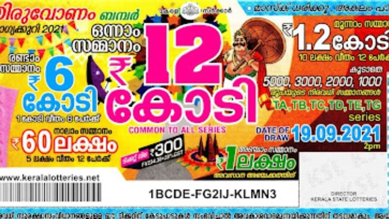 12 കോടി രൂപയാണ് ഒന്നാം സമ്മാനം. 300 രൂപയാണ് ടിക്കറ്റ് വില.