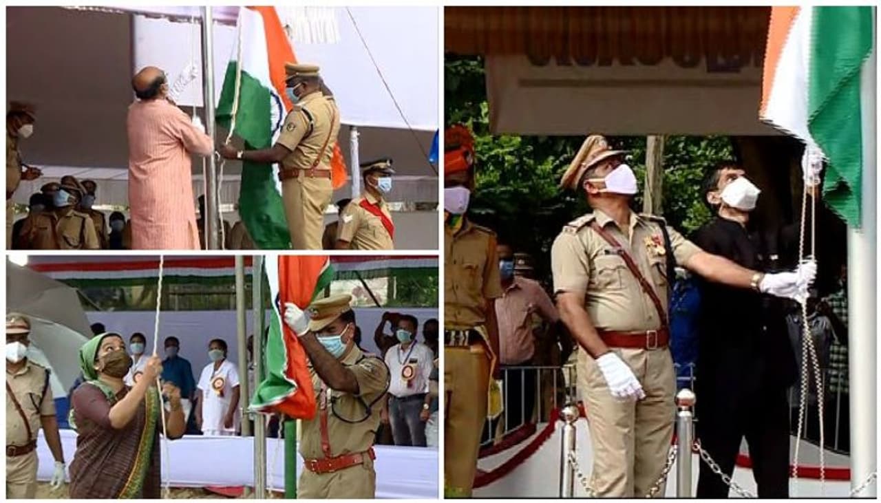 പാലക്കാട് കോട്ട മൈതാനത്ത് മന്ത്രി കെ കൃഷ്ണൻ കുട്ടി, കണ്ണൂരിൽ കളക്ടർ ടി വി സുഭാഷ്, പത്തനംതിട്ടയിൽ മന്ത്രി ജെ മേഴ്സിക്കുട്ടിയമ്മ, തൃശൂരിൽ കളക്ടർ എസ് ഷാനവാസ്, കാസർകോട് മന്ത്രി ഇ ചന്ദ്രശേഖരൻ, ഇടുക്കിയിൽ മന്ത്രി എം എം മണി, വയനാട്ടിൽ കളക്ടർ അദീല അബ്ദുല്ല, കോട്ടയത്ത് മന്ത്രി പി തിലോത്തമൻ, ആലപ്പുഴയിൽ മന്ത്രി തോമസ് ഐസക്, കൊല്ലത്ത് വനം മന്ത്രി കെ രാജു, എറണാകുളത്ത് ജില്ലാ കളക്റ്റർ എസ് സുഹാസ്, മലപ്പുറത്ത് ഡെപ്യൂട്ടി കളക്ടർ ഒ ഹംസ എന്നിവർ പതാക ഉയർത്തി. കോഴിക്കോട് വിക്രം മൈതാനിയില് നടന്ന സ്വാതന്ത്രദിന പരേഡില് എഡിഎം റോഷ്നി നാരായണൻ പതാക ഉയർത്തി സല്യൂട്ട് സ്വീകരിച്ചു. മന്ത്രി എ കെ ശശീന്ദ്രനും കോഴിക്കോട് ജില്ലാ കളക്ടറും നിരീക്ഷണത്തില് പോയ സാഹചര്യത്തിലാണിത്. സാമൂഹ്യ അകലം പാലിച്ച് 100 പേര് മാത്രമെ പങ്കെടുത്തുള്ളൂ.