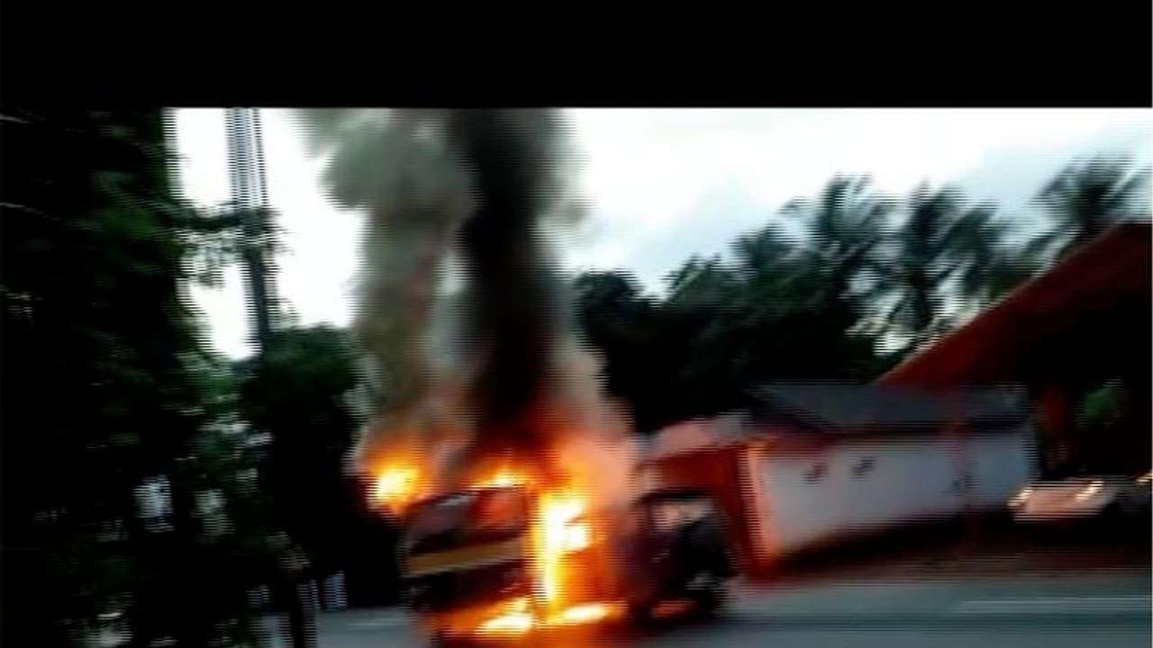 കൂത്തുപറമ്പ് നെരുവമ്പായിൽ ടിപ്പർ ലോറിയും ബൊലേറൊ ജീപ്പും കൂട്ടിയിടിച്ച് തീപിടിച്ചു. യാത്രക്കാർക്ക് പരിക്കേറ്റു
