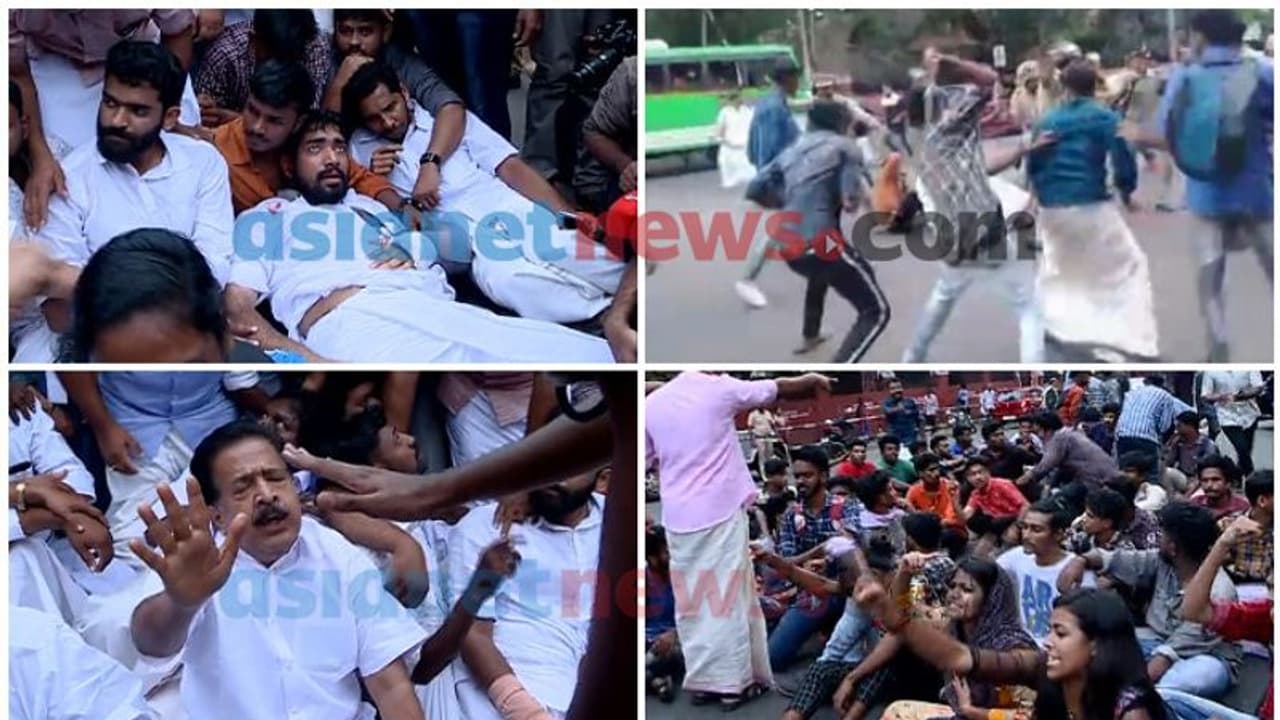 എംജി റോഡിൽ ഇരുവിഭാഗത്ത് നിന്നും പരിക്കേറ്റ പ്രവർത്തകരെ നിരത്തിയിരുത്തി ഇരുവിഭാഗവും ഗതാഗതം തടസ്സപ്പെടുത്തി കുത്തിയിരുന്നു. വിവരമറിഞ്ഞ് സ്ഥലത്തെത്തിയ പ്രതിപക്ഷനേതാവ് രമേശ് ചെന്നിത്തലയും പൊലീസ് ഉദ്യോഗസ്ഥരോട് ക്ഷുഭിതനായി. പ്രതിഷേധവുമായി ചെന്നിത്തലയും റോഡിൽ കുത്തിയിരുന്നു.