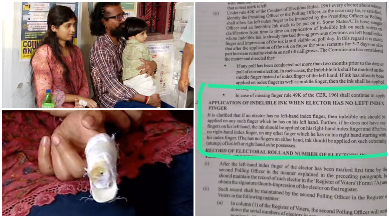തൃശ്ശൂരിൽ പരിക്കേറ്റ ചൂണ്ടുവിരലുമായി വോട്ട് ചെയ്യാനെത്തിയ യുവതിക്ക് വോട്ട് നിഷേധിച്ച സംഭവം വലിയ വിവാദമായിരുന്നു. വിരലുകൾക്ക് പരിക്കോ മറ്റ് പ്രശ്നങ്ങളോ ഉള്ളവർക്ക് എങ്ങനെ വോട്ട് ചെയ്യാമെന്ന നിയമവശങ്ങൾ ചർച്ചയാകുകയായണ്.